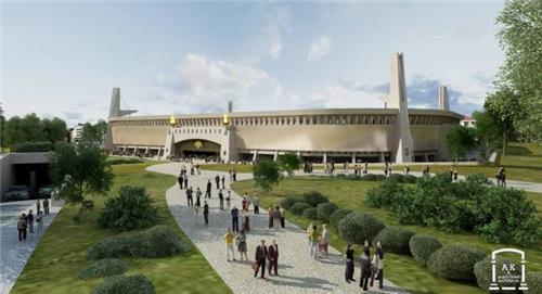 Αποσπάσματα από την παρουσίαση του νέου γηπέδου της ΑΕΚ στη Νέα Φιλαδέλφεια με βυζαντινή αρχιτεκτονική και παραπομπή στην Αγιά Σοφιά.