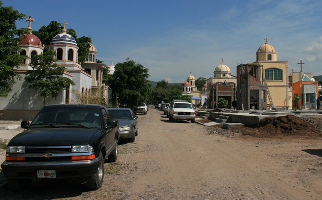 Όσο για το κοιμητήριο που θάβονται τα μέλη του Σιναλόα, το περίφημο «Jardines del Humaya», θυμίζει ακριβή συνοικία πόλης. Η μεξικανική νεκρόπολη, χτισμένη με την ίδια ακριβώς συμβολική των αιγυπτιακών πυραμίδων, φιλοξενεί τους μεξικανούς «φαραώ» των ναρκωτικών και της βίας.