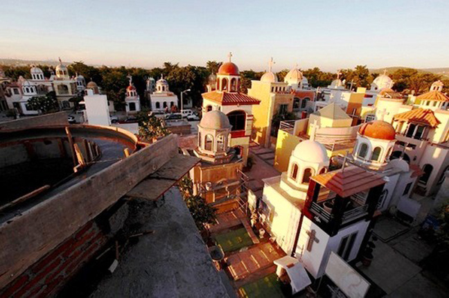 Εγκατεστημένο στα περίχωρα της Culiacán, της μεγαλύτερης πόλης της επαρχίας Σιναλόα, το νεκροταφείο είναι το σπίτι των μεγαλειωδών τάφων, που μοιάζουν με μεγάλα δωμάτια στα οποία έχουν φιλοτεχνηθεί περίτεχνοι θόλοι. Κι ενώ ο χώρος ταφής πωλείται στις συνήθεις διαστάσεις του φέρετρου, οι συγγενείς του νεκρού αγοράζουν τρεις ή και περισσότερες θέσεις για να χτιστεί το μαυσωλείο. Κάποια μάλιστα έχουν και χώρους ψυχαγωγίας, για να απασχολούνται τα παιδιά στη διάρκεια των οικογενειακών επισκέψεων!