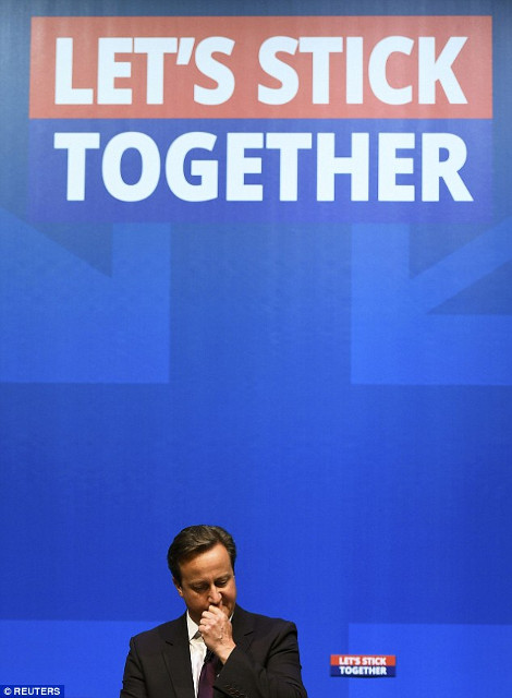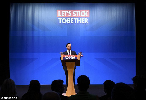 Αν δεν σας αρέσει αυτή η κυβέρνηση, δεν θα είναι εδώ για πάντα. Αλλά αυτό, θα είναι για πάντα», ανέφερε ο Κάμερον, προσθέτοντας ότι η προοπτική της ανεξαρτησίας ακούγεται πολύ καλή για να είναι αληθινή. «Αν το ”όχι” κερδίσει την Πέμπτη, αυτό θα σημάνει την έναρξη ενός τεράστιου και άνευ προηγουμένου προγράμματος μεταβίβασης εξουσιών. Είμαστε καλύτερα μαζί», κατέληξε, επαναλαμβάνοντας το σύνθημα της εκστρατείας του «όχι».