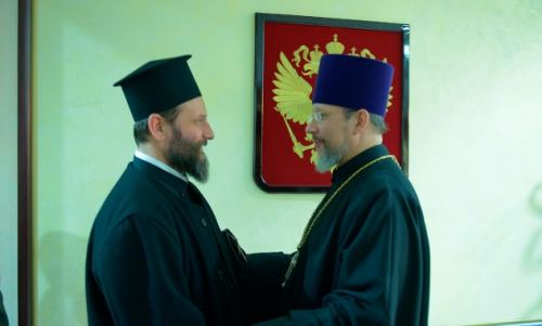 Τον Αρχιεπίσκοπο Ιωάννη συνοδεύουν ο ηγούμενος της Ρωσικής Αντιπροσωπείας του Πατριαρχείου Μόσχας στη Σόφια, Αρχιμανδρίτης Φίλιππος (Vasiltsev) και η μητέρα του κ.Γαλήνη Vranishkovskaya.