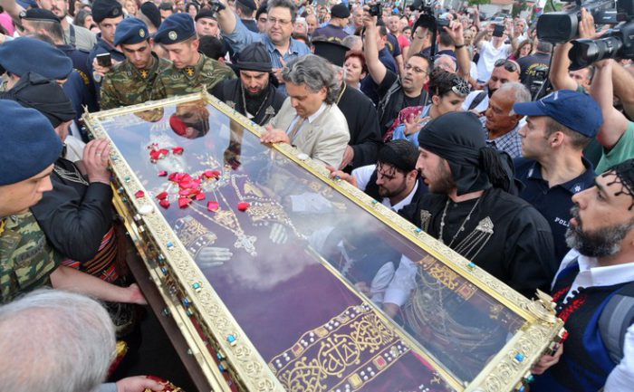 Είναι η πρώτη φορά που το ιερό λείψανο βγαίνει εκτός Βενετίας και για το λόγο αυτό χιλιάδες πιστοί είχαν συγκεντρωθεί από νωρίς για να παρακολουθήσουν την υποδοχή του και τις εκδηλώσεις που ακολούθησαν.