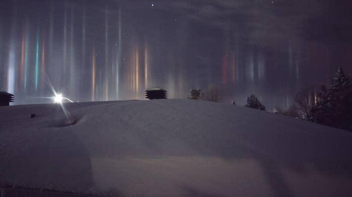 «Οι πυλώνες φωτός θεωρούνται ένα από τα πιο εντυπωσιακά φυσικά φαινόμενα. Το φαινόμενο προκαλείται από την αλληλεπίδραση του φωτός με κρυστάλλους από πάγο.