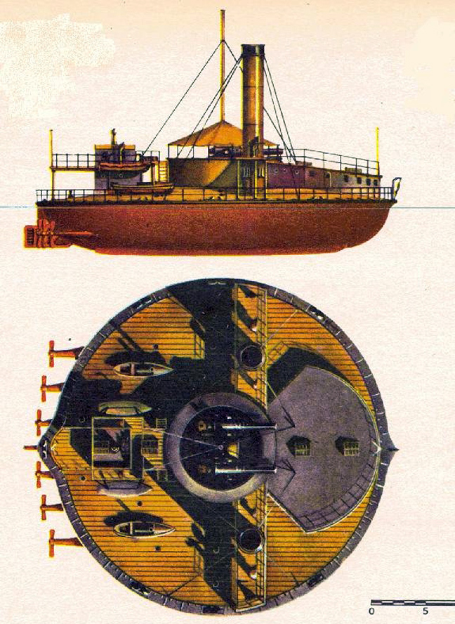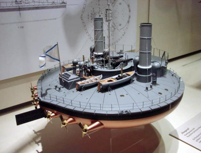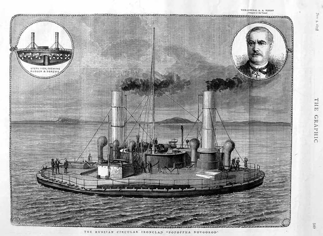 Στο πλαίσιο αυτό, από το 1871-1874, οι Ρώσοι χάρισαν στην ανθρωπότητα ένα από τα πλέον παράξενα πολεμικά πλοία που είδαν ποτέ οι θάλασσες. Ο Andrei Alexandrovich Popov, ο αξιωματικός του ναυτικού που ήταν υπεύθυνος για τον σχεδιασμό, ήθελε το πλοίο του να είναι θωρακισμένο ως εκεί που δεν παίρνει, κατά τα τρέχοντα πρότυπα των αντίστοιχων design της εποχής, έκανε όμως την κίνηση-ματ δίνοντάς του κυκλικό κύτος!