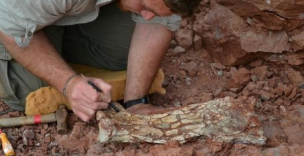 Παλαιοντολόγος εργάζεται πάνω στο απολίθωμα του τρομακτικού «Δράκου του Θανάτου» (φωτογραφία Leonardo Ortiz David-Universidad de Cuyo/via Reuters)