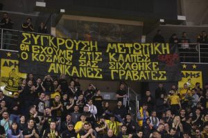Το οργισμένο γνωστό σύνθημα κατά του πρωθυπουργού Κ.Μητσοτάκη που δόνησε τις εξέδρες του «Νick Galis Hall» δεν άφηνε περιθώρια για παρερμηνείες: