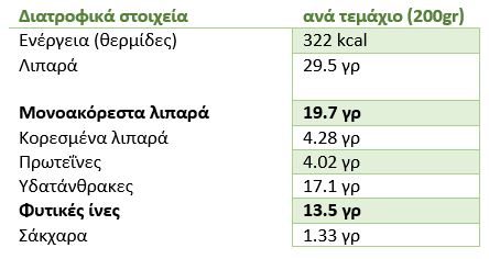 Στον πίνακα που ακολουθεί, παρατίθεται η σύσταση του αβοκάντο σε μακροθρεπτικά συστατικά: